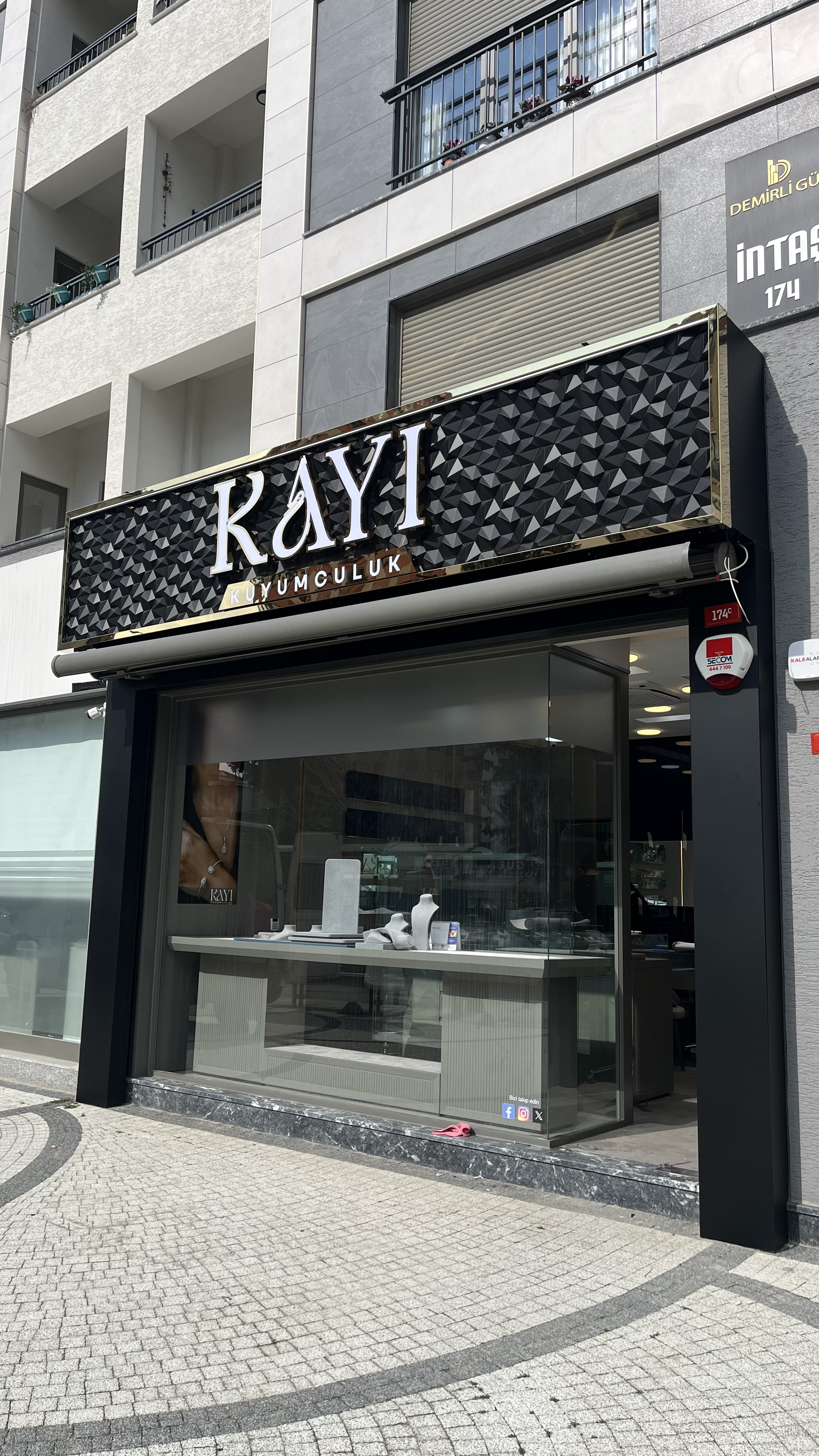 Biz bu projede, Kayı Kuyumculuk için özel tasarlanmış 3D gold kutu harf tabela uygulaması ile markanın prestijini üst seviyeye taşıdık.